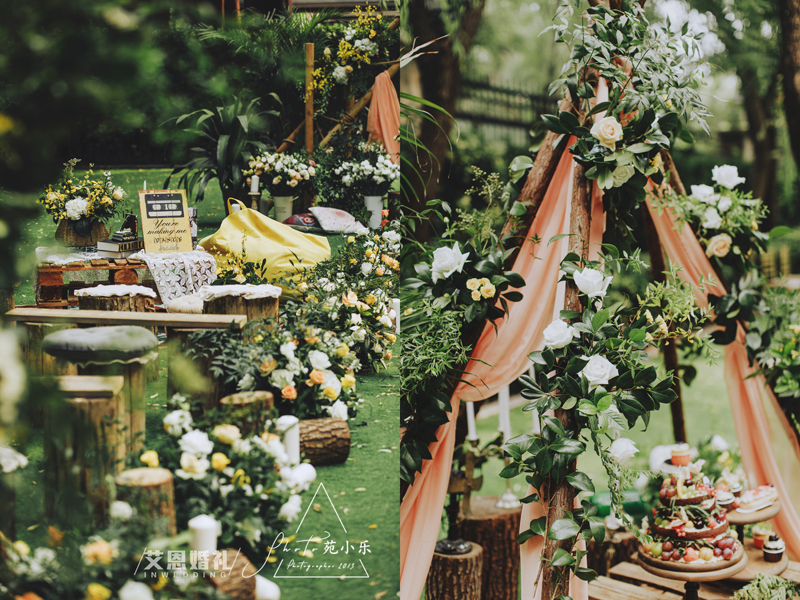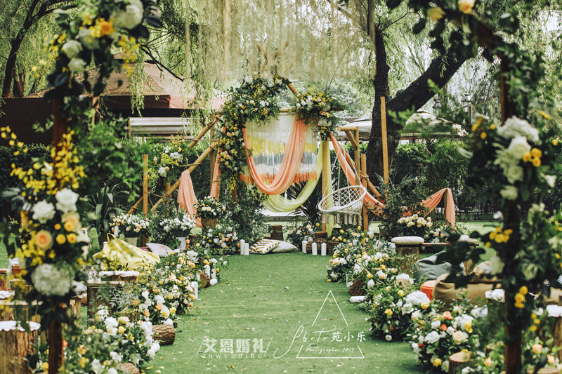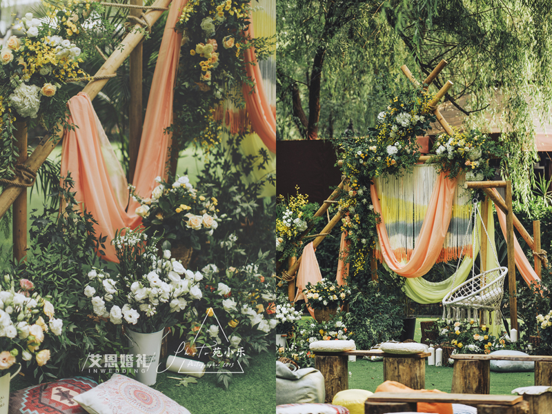 夏日一场自然复古情调的户外婚礼。恰到好处的明朗配色,柔软的布艺和编织元素的结合,细节的精致,为婚礼现场酿造出独特又舒适的浪漫质感。 乍见有了爱情,久伴有了感情,平凡中满是甜蜜,无聊中并不无聊。